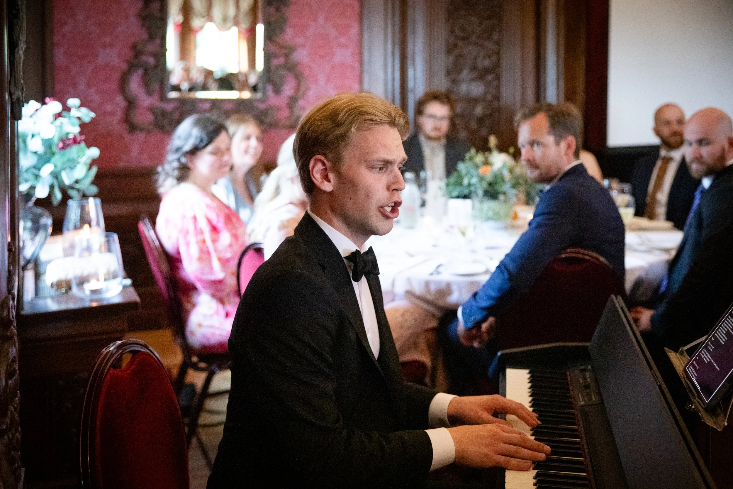 Piano var mitt første hovedinstrument og min store lidenskap er å kombinere sang og pianospill. Jeg tilbyr taffelmusikk i mottakelser og seremonier – eller som hovedunderholdning i ditt arrangement.